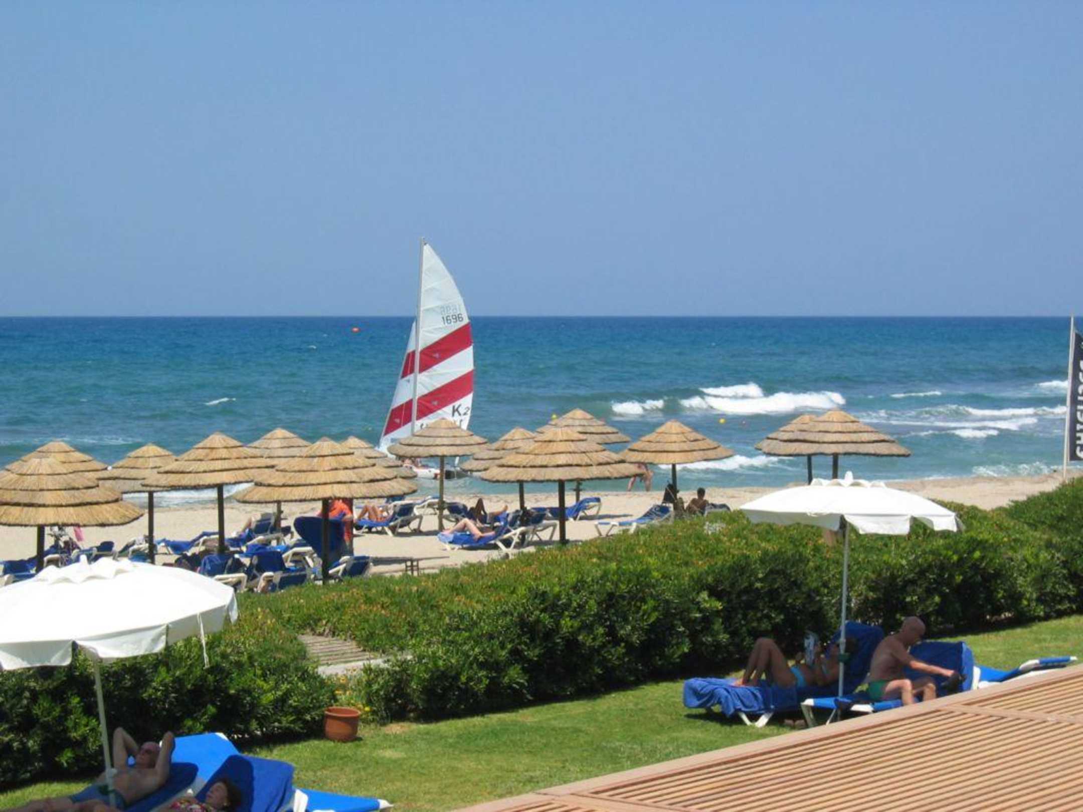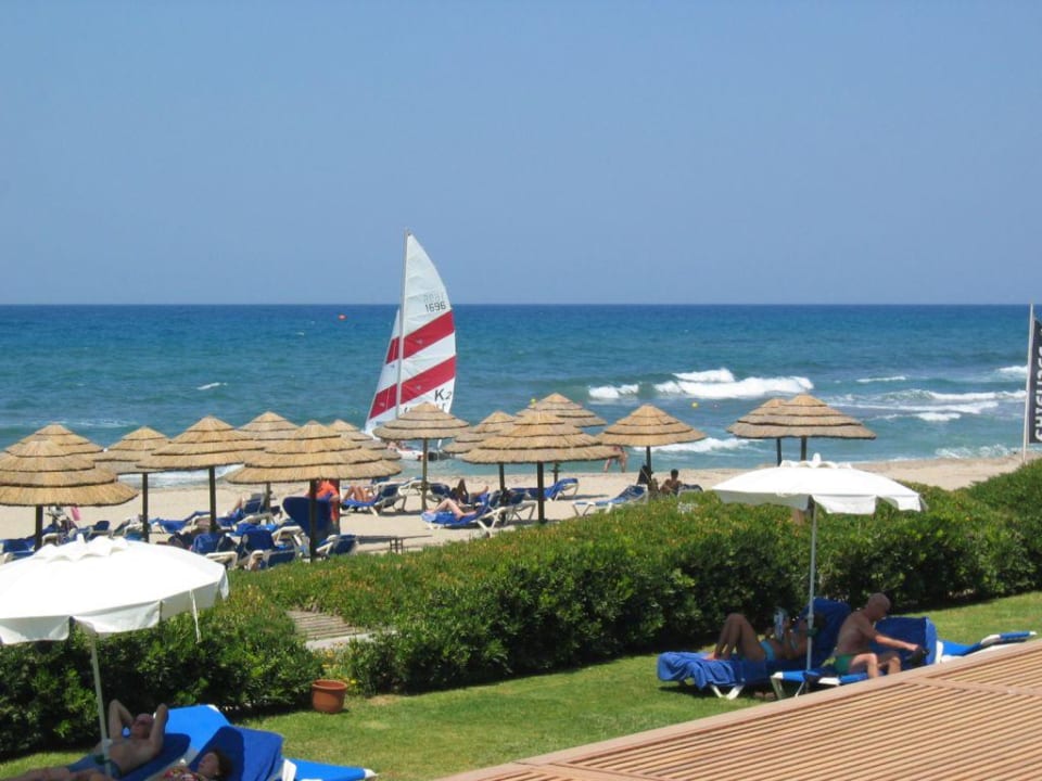 Ausblick vom Garten des Lyttos Beach zum Strand/Meer