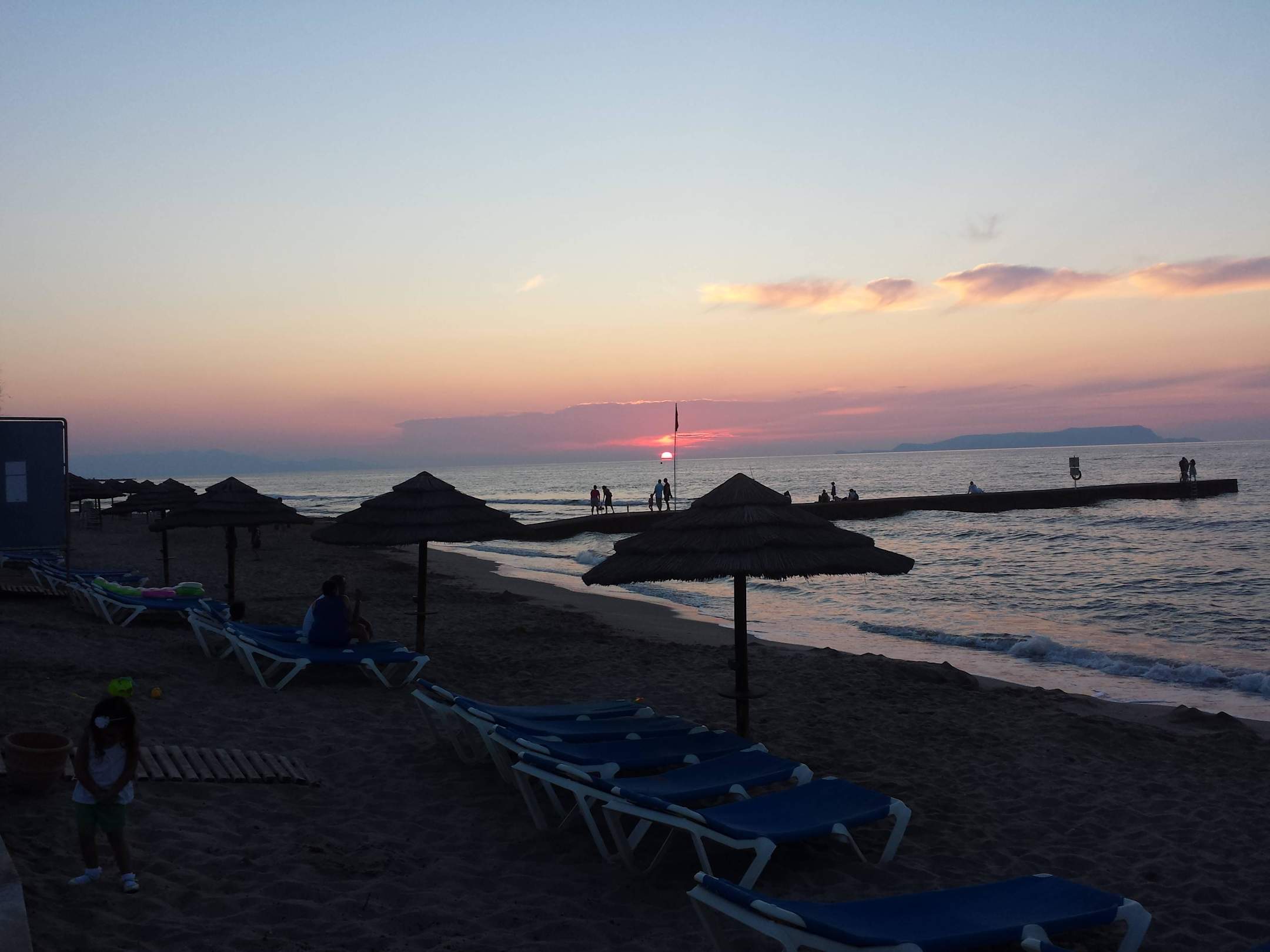 Sonnenuntergang fotografiert vor der Taverne Zorba