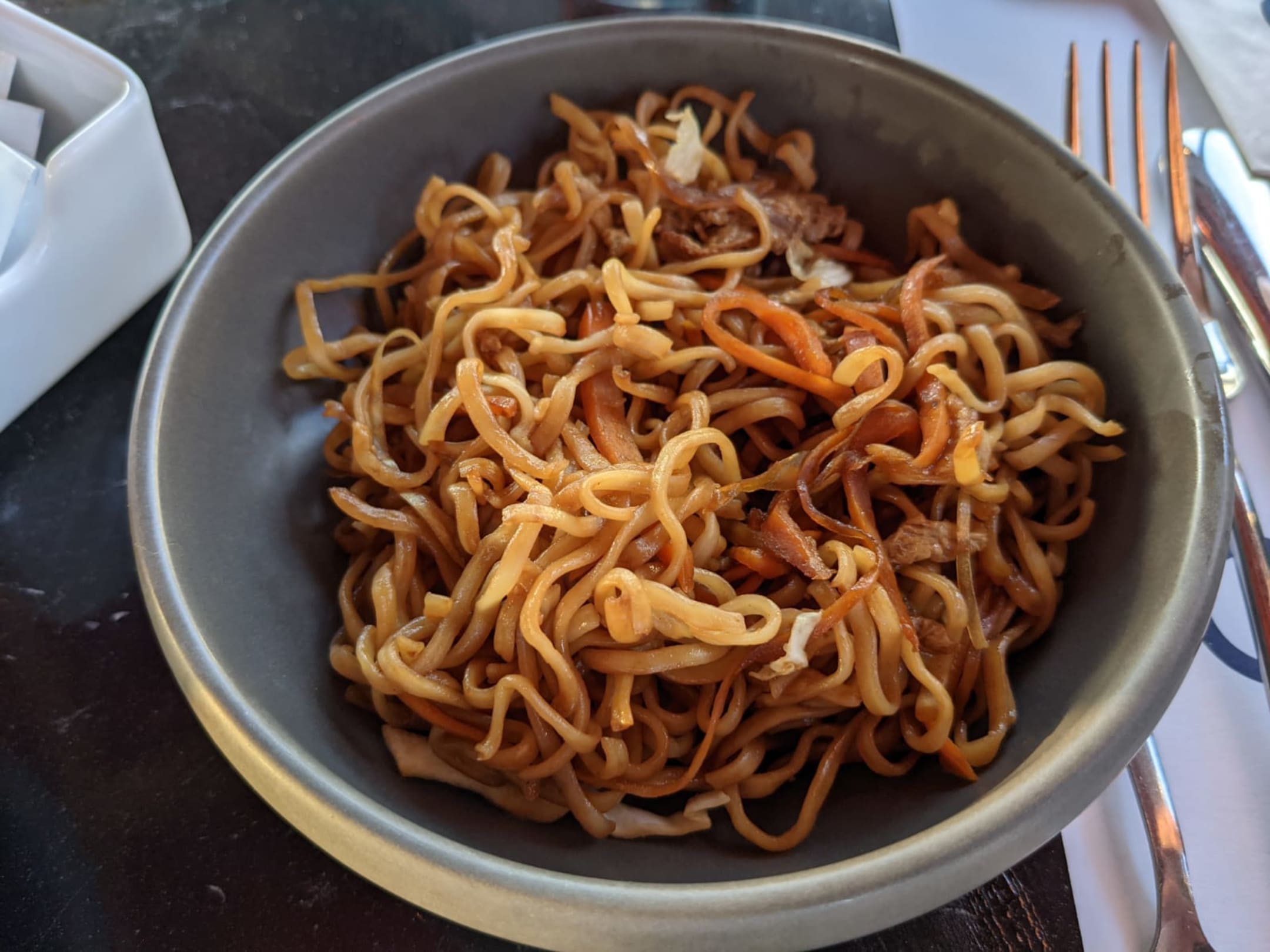 Gebratene Nudeln aus dem Asiarestaurant.