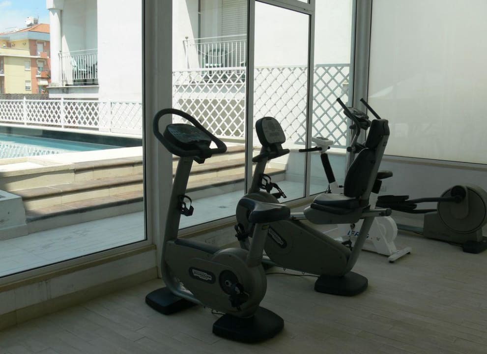 Der Fitnessraum mit Blick auf den Pool.