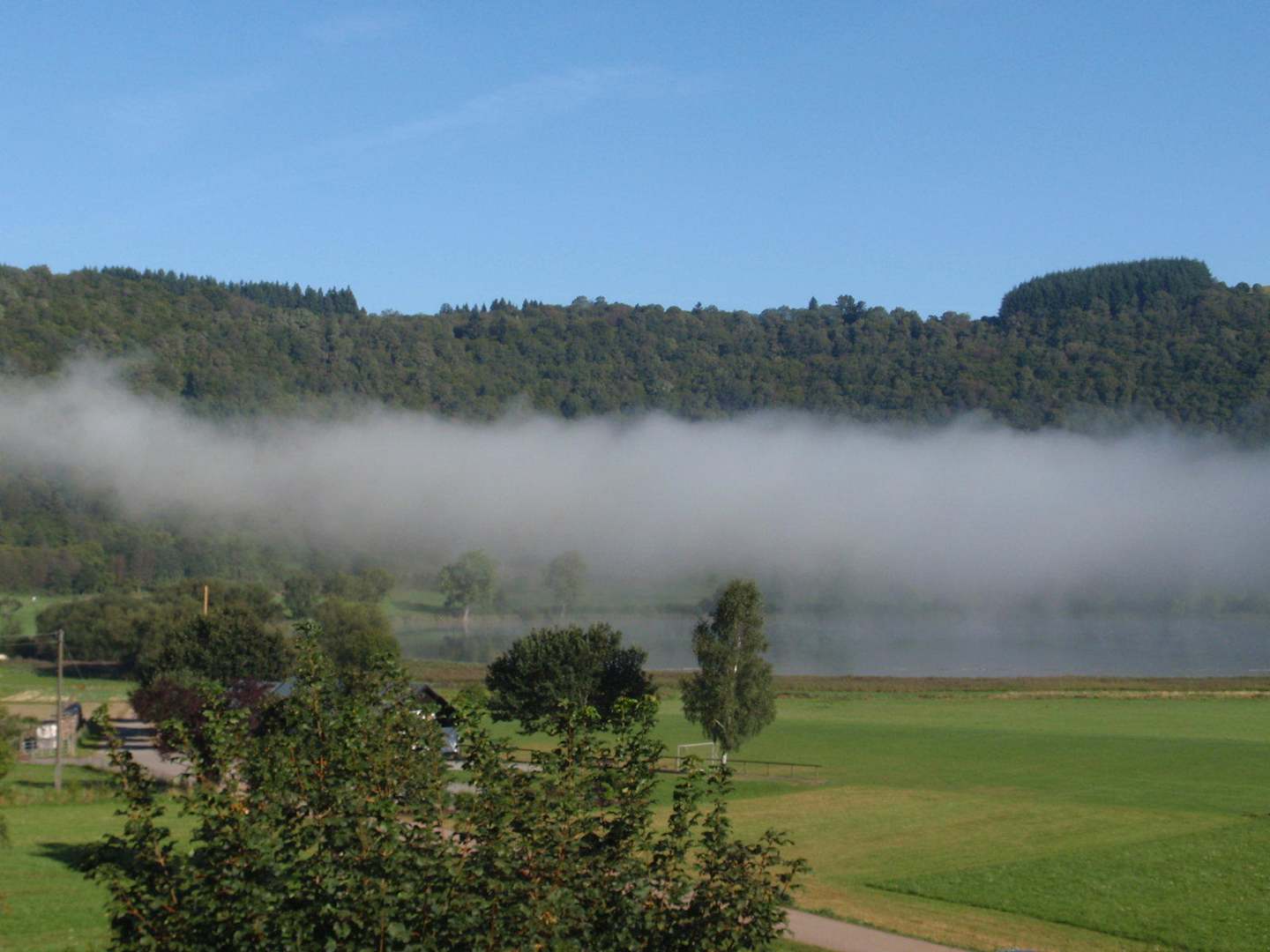 Kratermeer in de vroege ochtend
