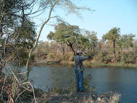 Machampane wilderness camp birder\'s paradiseOut on a guided morning walk from Machampane Wilderness Camp, accompanied by the cry of the fish eagle and grey loerie, a guest surveys the tree canopies on the opposite banks alert to a sighting of one of the seldom seen species that are endemic to this area.