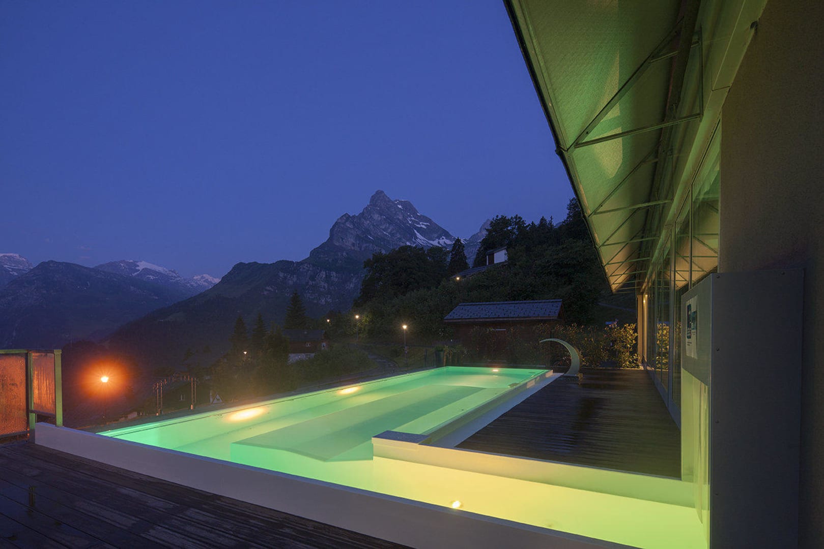 Outdoor Infintitypool bei Dämmerung