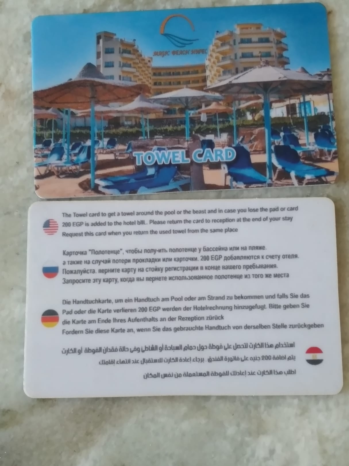 Handtuchkarte für Strand und Pool.