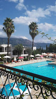 Widok na basen z tarasu
