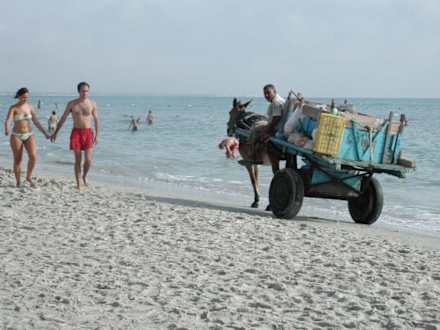 Strand mit fahrenden Verkäufer