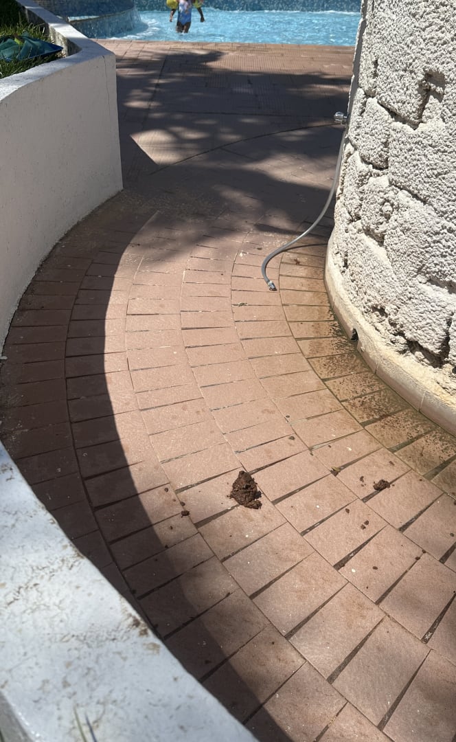 Kot an der Außendusche vom Pool