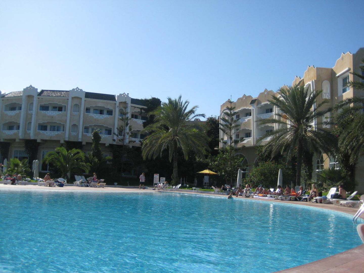 Blick vom Pool auf Hotel