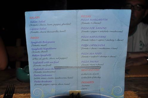 Speisekarte italienische Restaurant