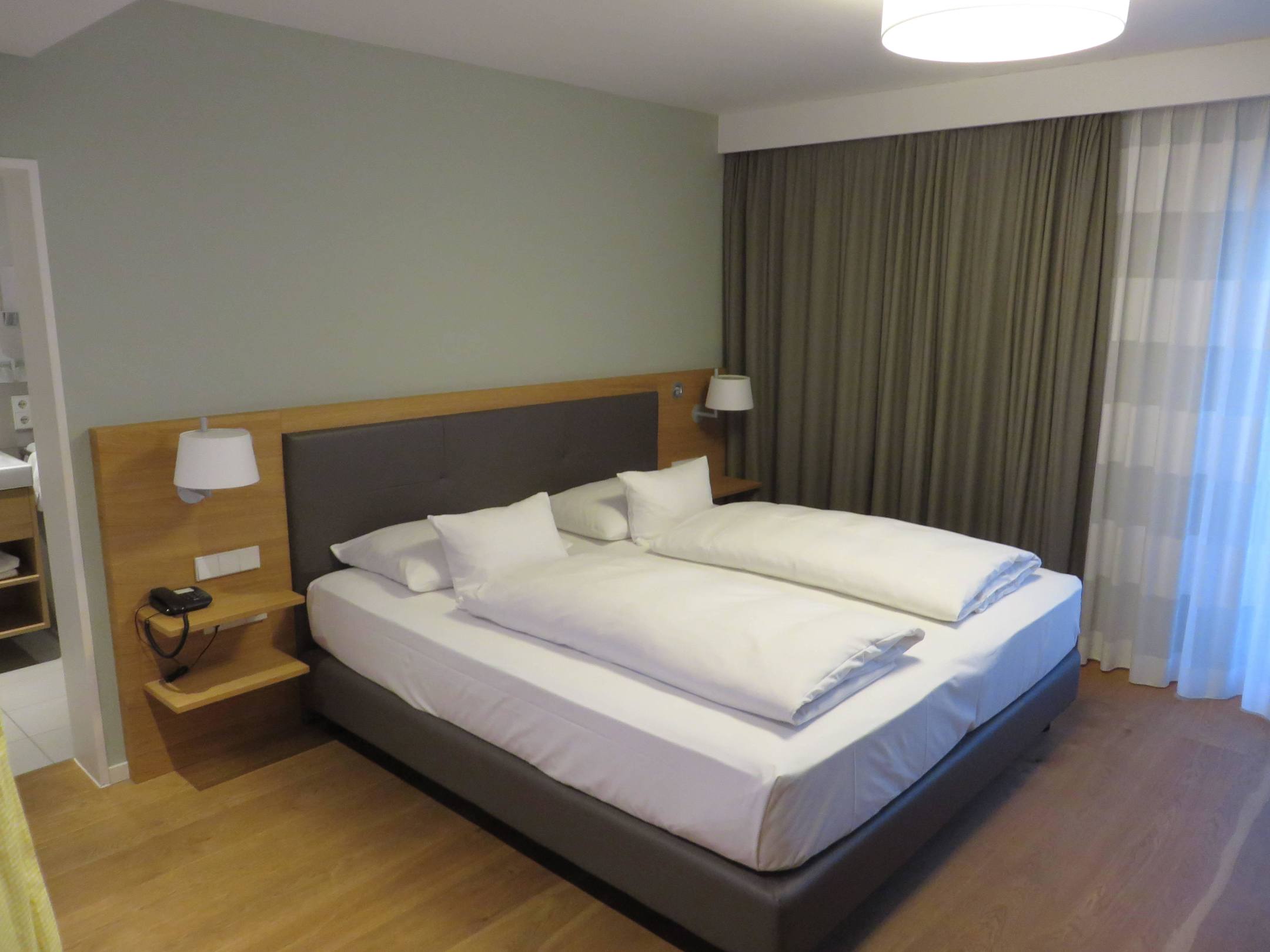 Blick ins Zimmer auf das bequeme Bett