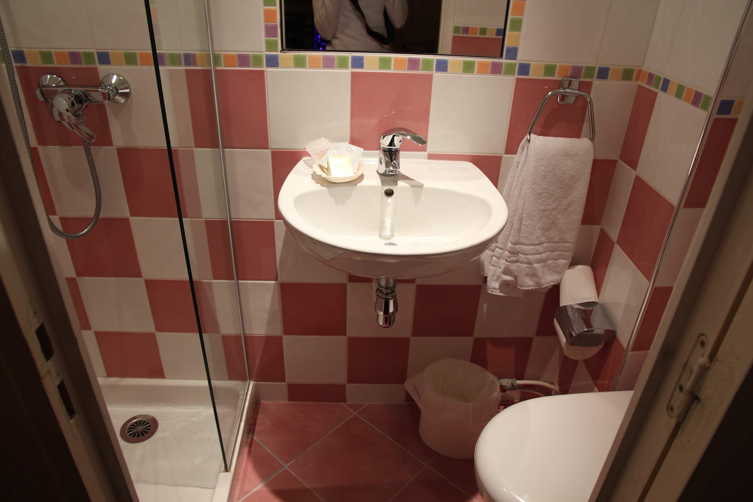 BadezimmerÜbersichtliches Badezimmer - Leider gibt es keinen Duschvorhang --- Überschwemmungsgefahr