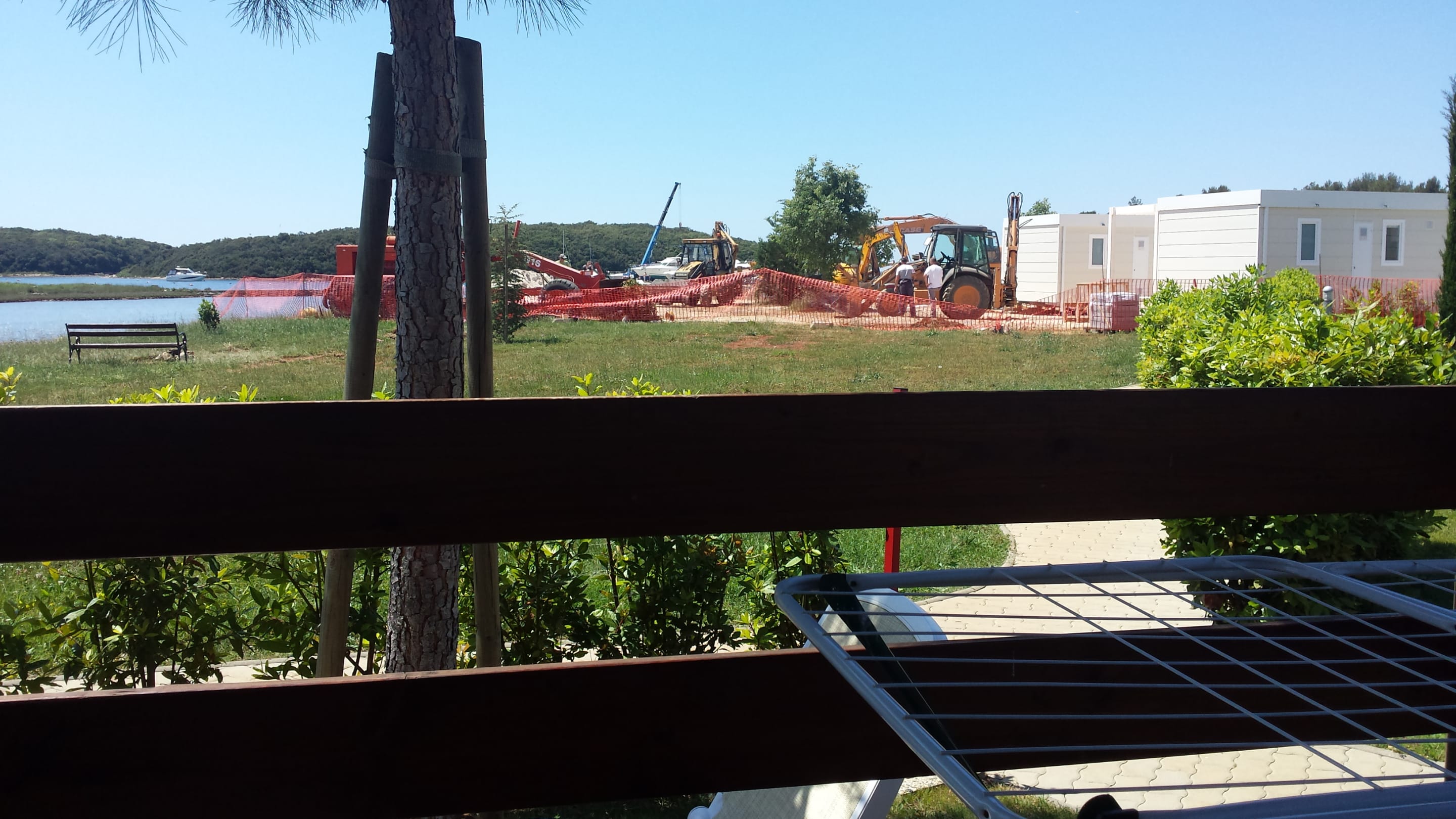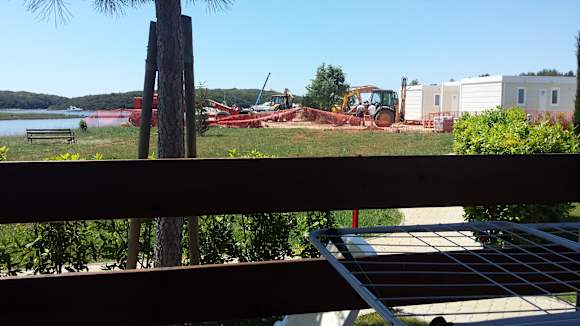 AusblickBaustelle (zeitweise bis zu 4 Bagger). Links das Meer wie man es erwartet ... aber siehe nächstes Foto