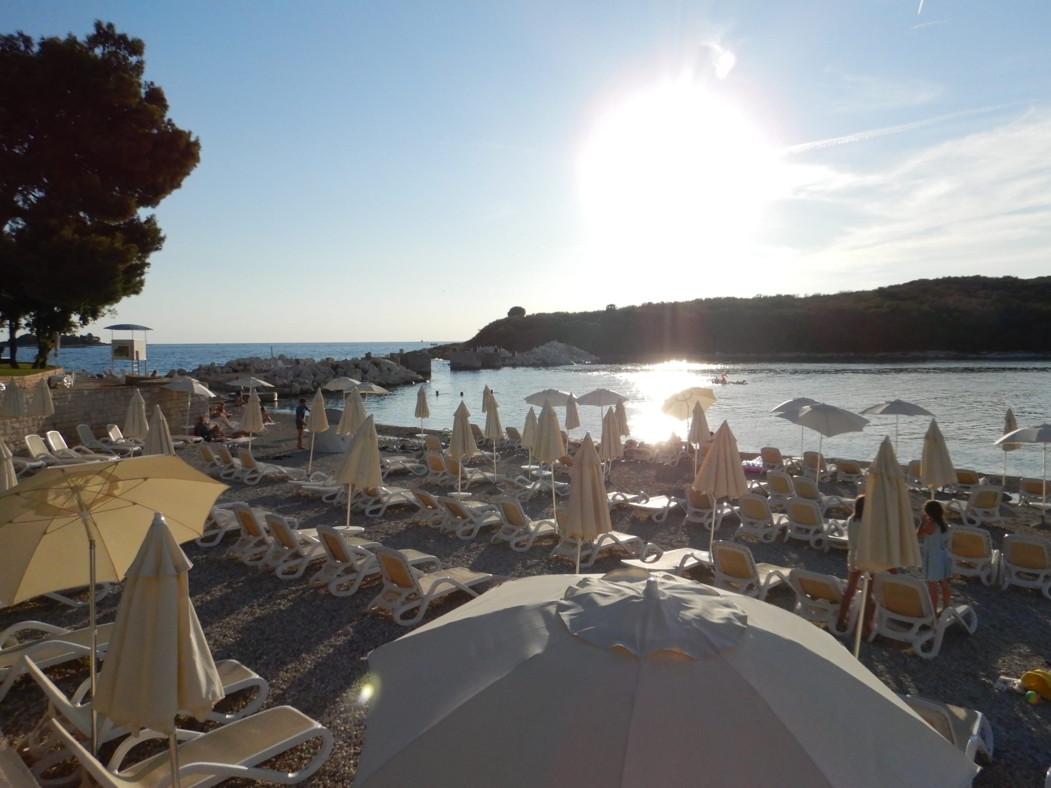 Der kleine Kieselstrand ist leider mit (kostenpflichtigen) Liegen zugestellt.
