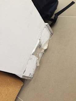 Zimmer 99, Fußboden Sockel abgerissen.