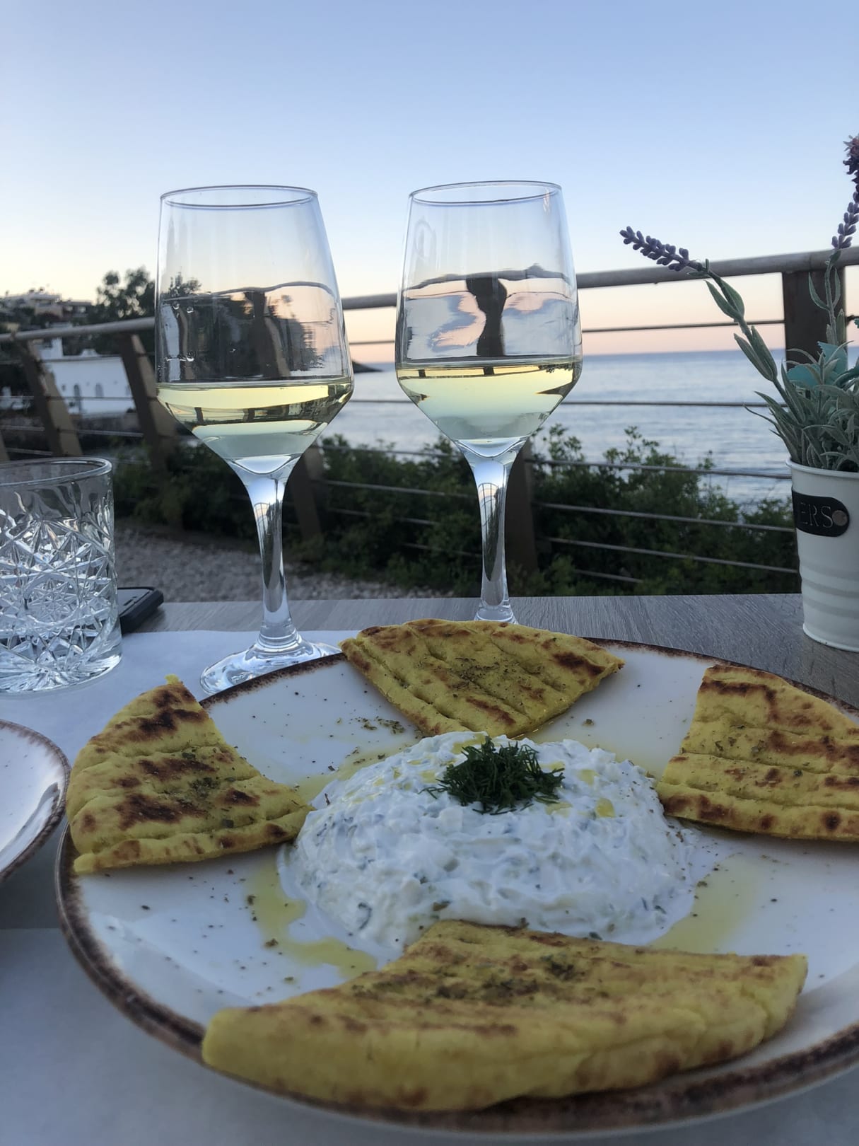 Tzatziki mit Pita und Weißwein