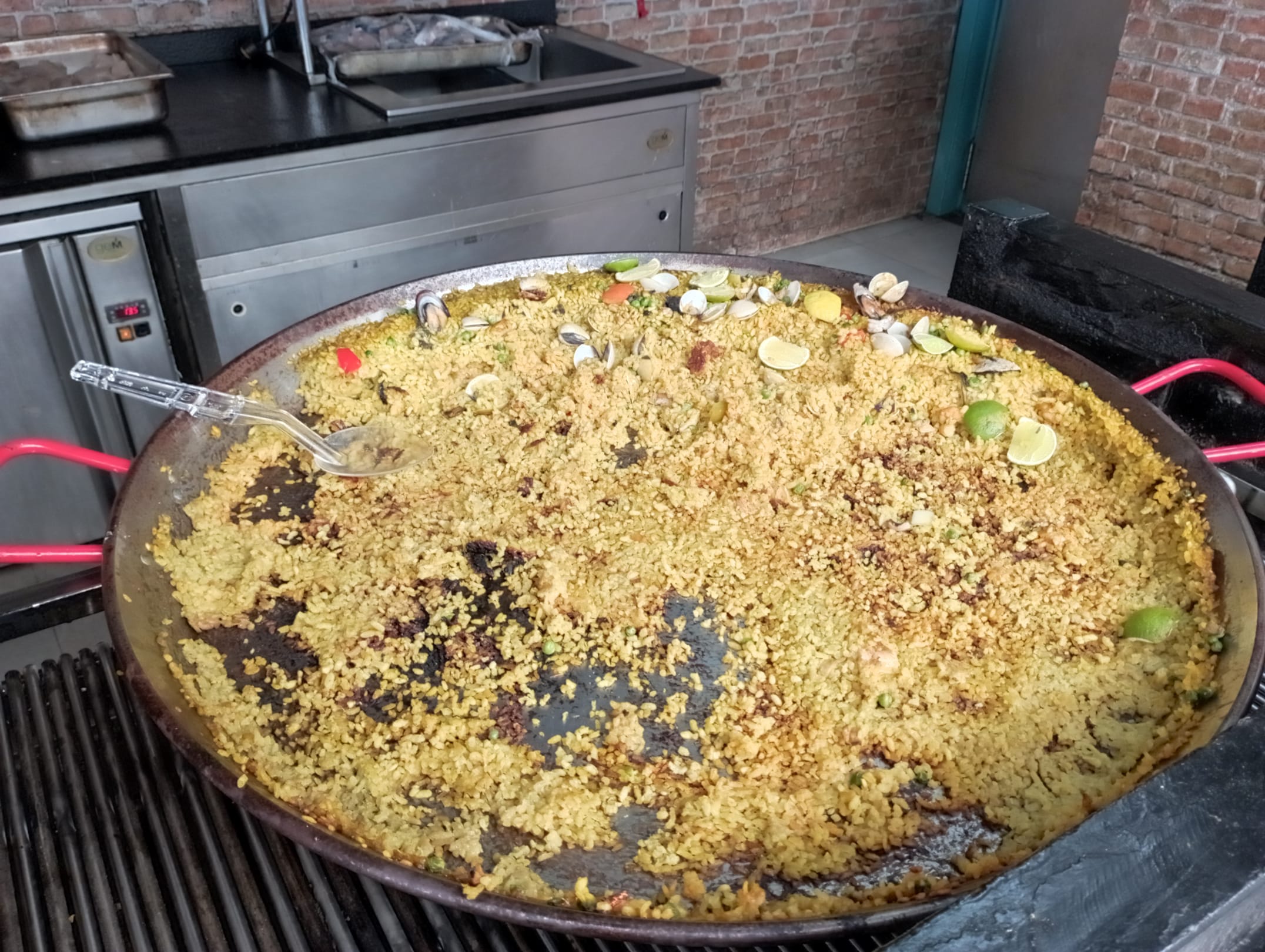 Verkochte und kalte Paella im Sea and See Restaurant am Strand am Mittag