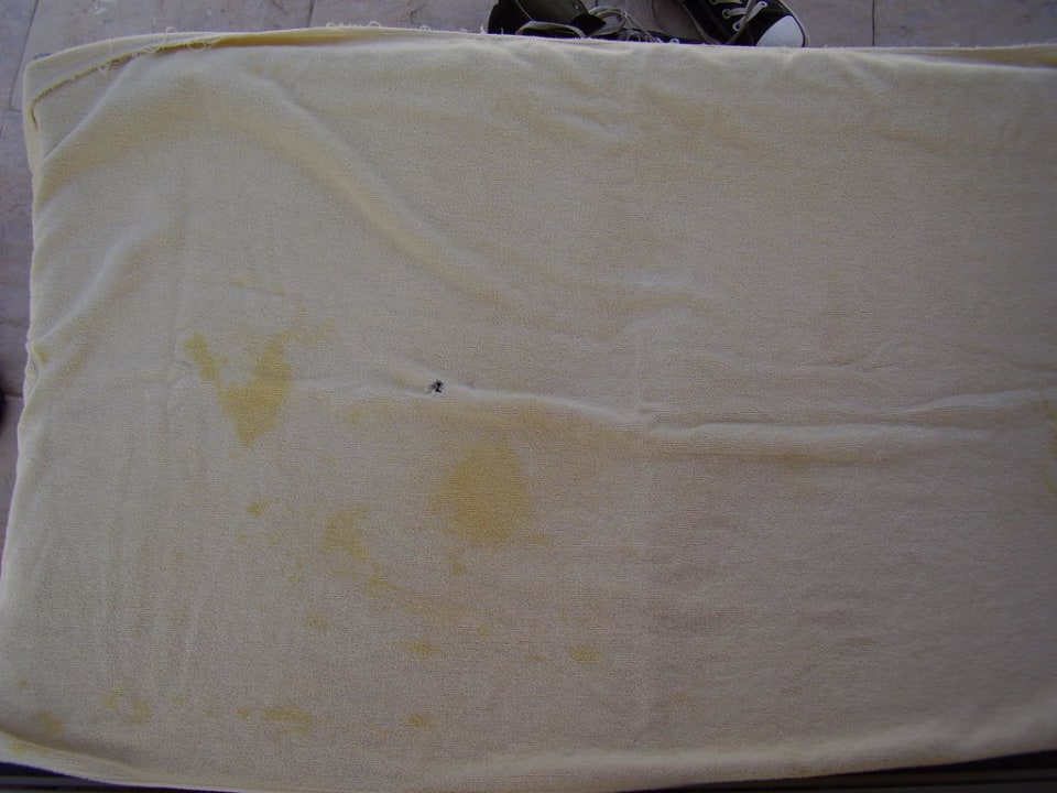 leicht fleckig und löchrig