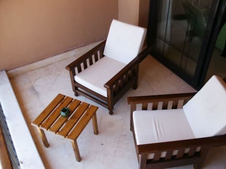 Großer Balkon mit gemütlichen Möbeln
