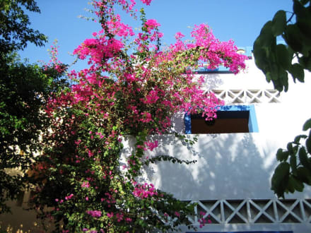Garten und Hotelgebäude