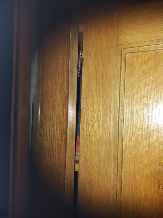 Das ist eine von den Kleiderschranktüren mit herausgerissenem Scharnier.