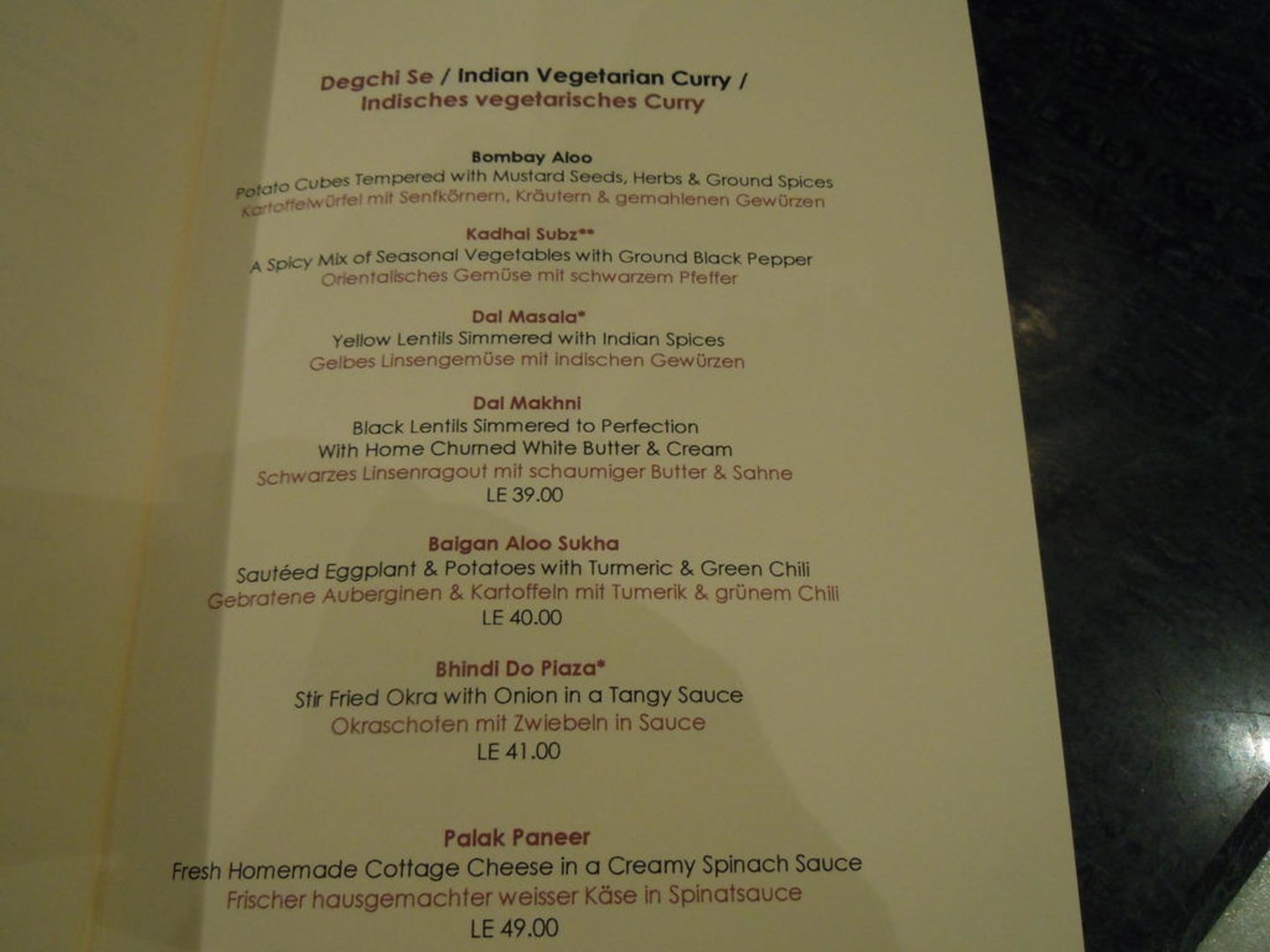 Mumbai -Indian Restaurant-Speisekarte