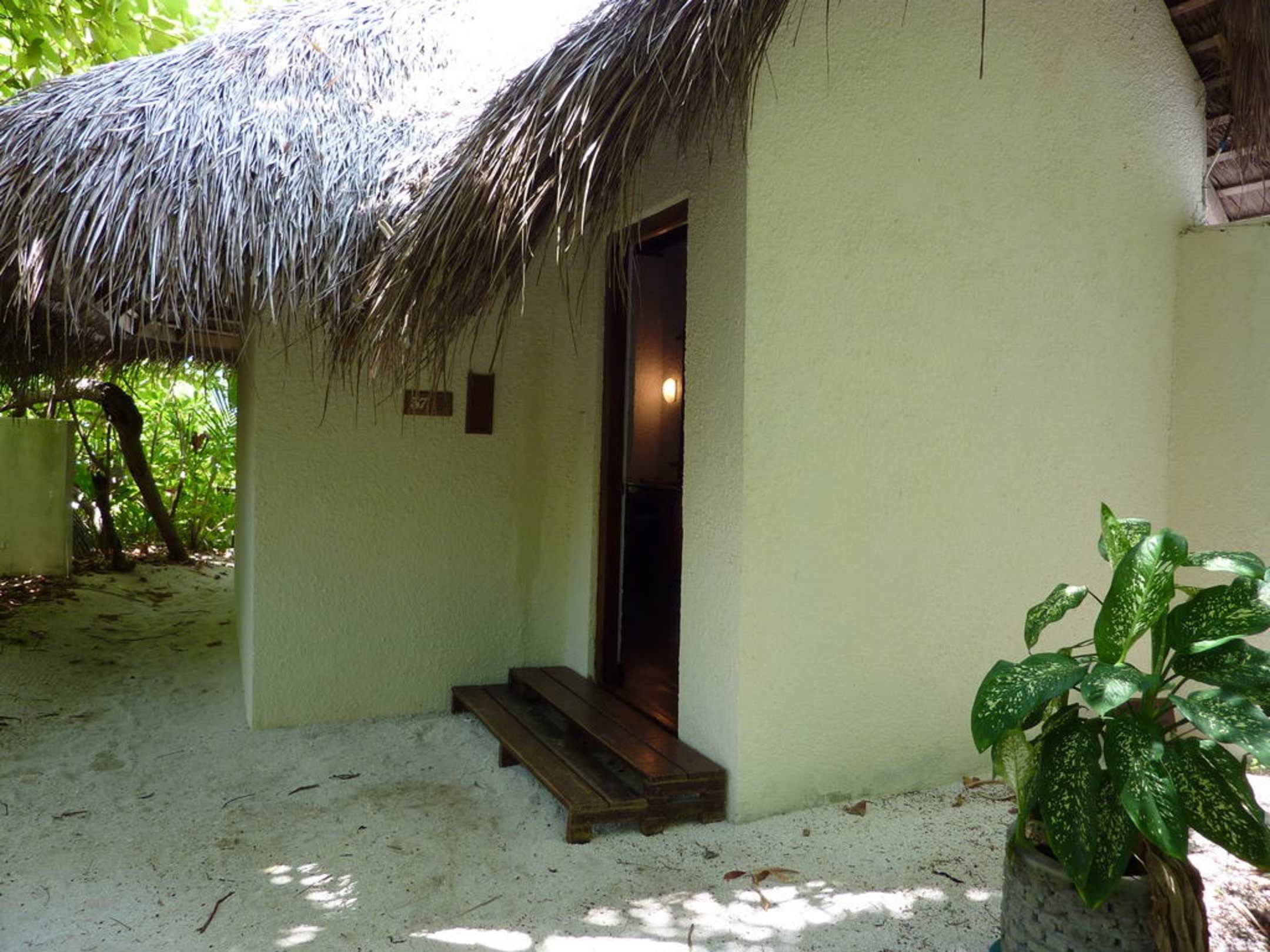 Bungalow 37. An der Seite vorbei zum Strand und Vordereingang.