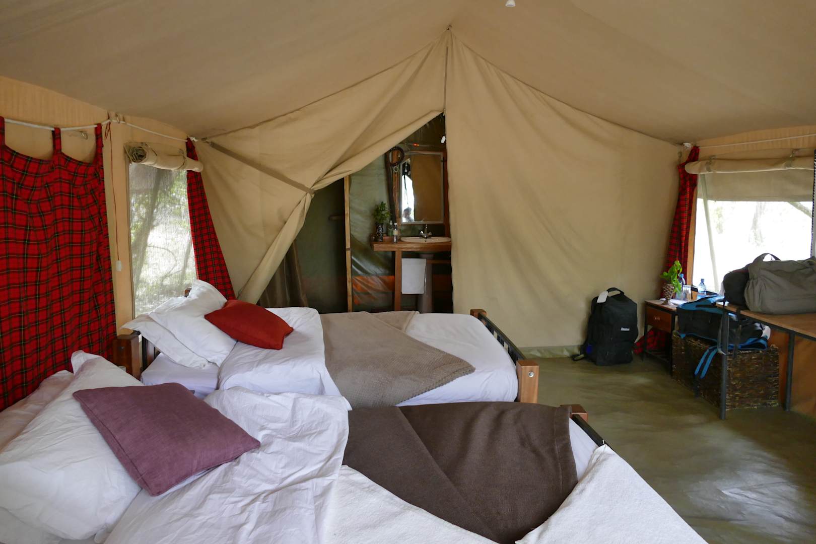 Ganz tolle Zelte mit üppig ausgestatteten Betten, abgetrenntem Bad