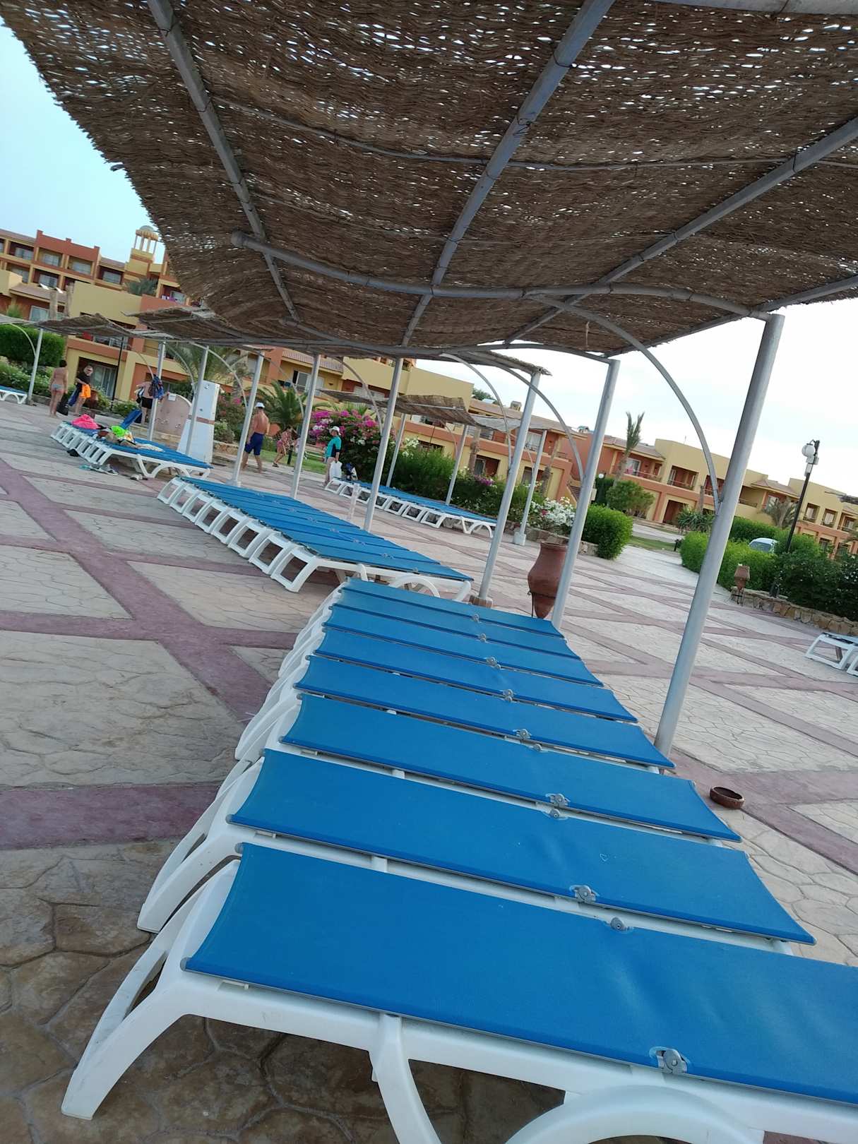 PoolLeider gab es am Pool keine Schirme. Nur solche festen Stellplätze. Und Tische gab es auch nicht.