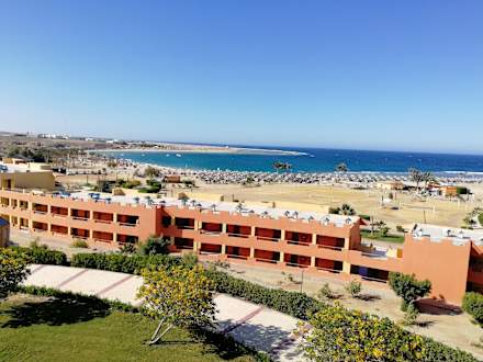 Blick von unserem Hotelzimmer auf den Strand und die tolle Badebucht