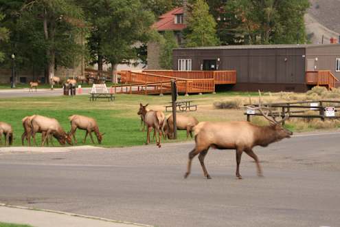 Elchherde vor dem Hotel