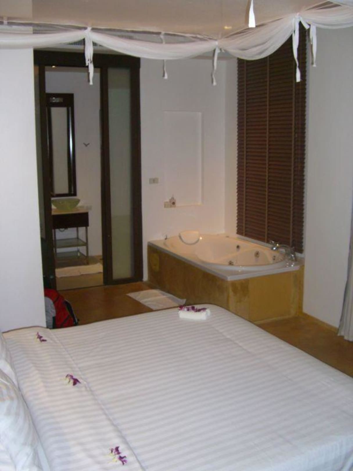 Hotelzimmermit Blick auf Jacuzzi und Bad. Leider funktionierte der Jacuzzi aber nicht richtig! warmes Wasser gab es auch nur morgens.
