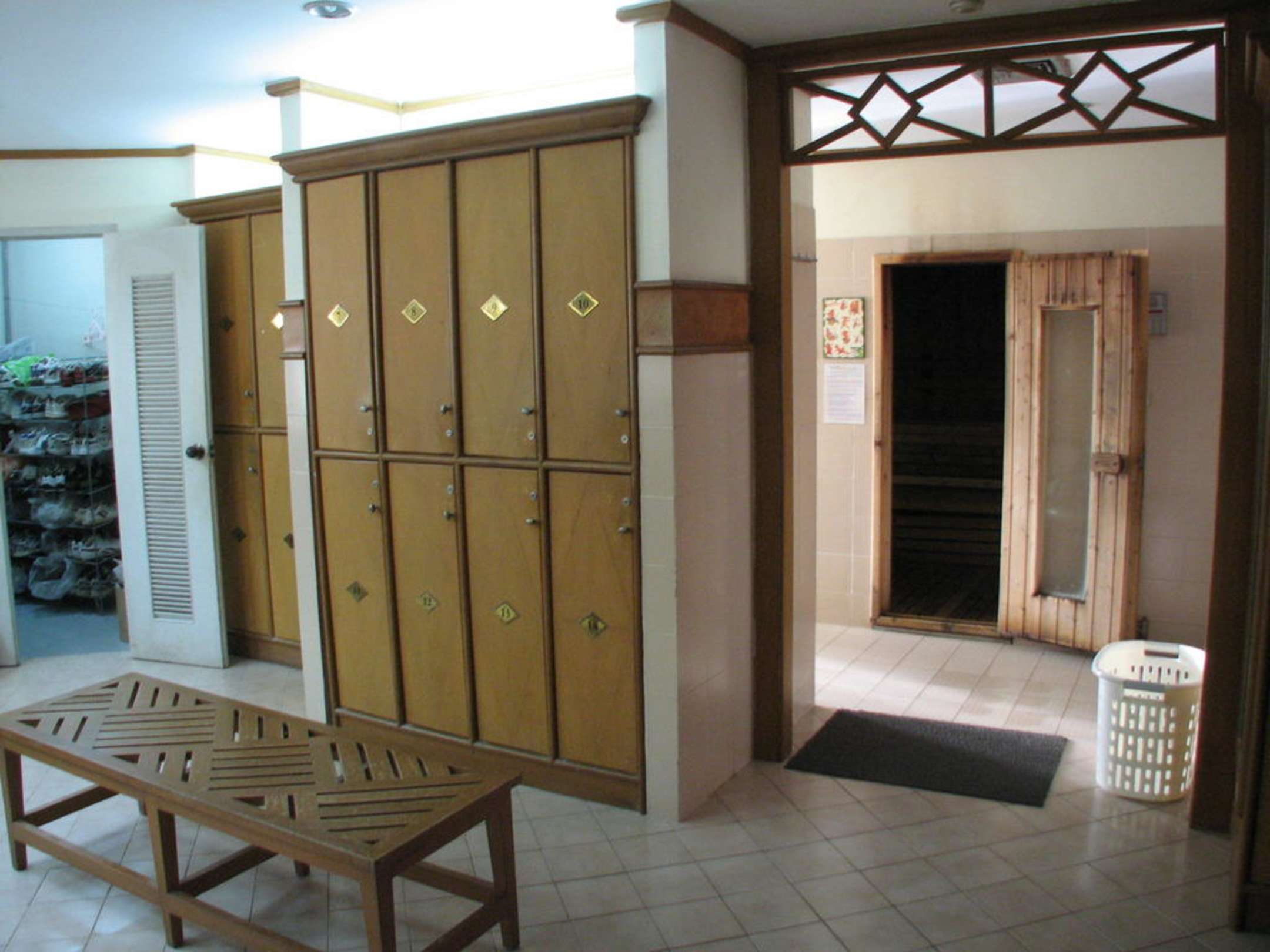 Umkleidekabine und Sauna.