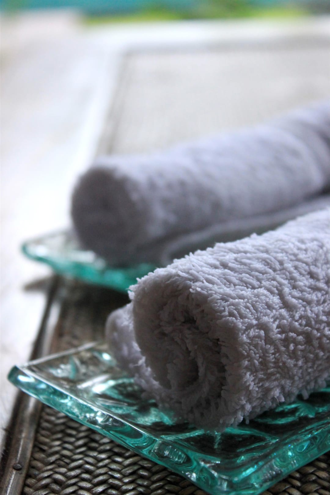 Erfrischungstuecher bei der Ankunft in der Villa