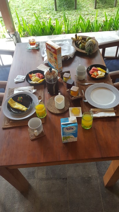 Jeden Morgen frisch zubereitetes Frühstück (Anmerkung: Cornflakes und Milch haben wir selbst besorgt)