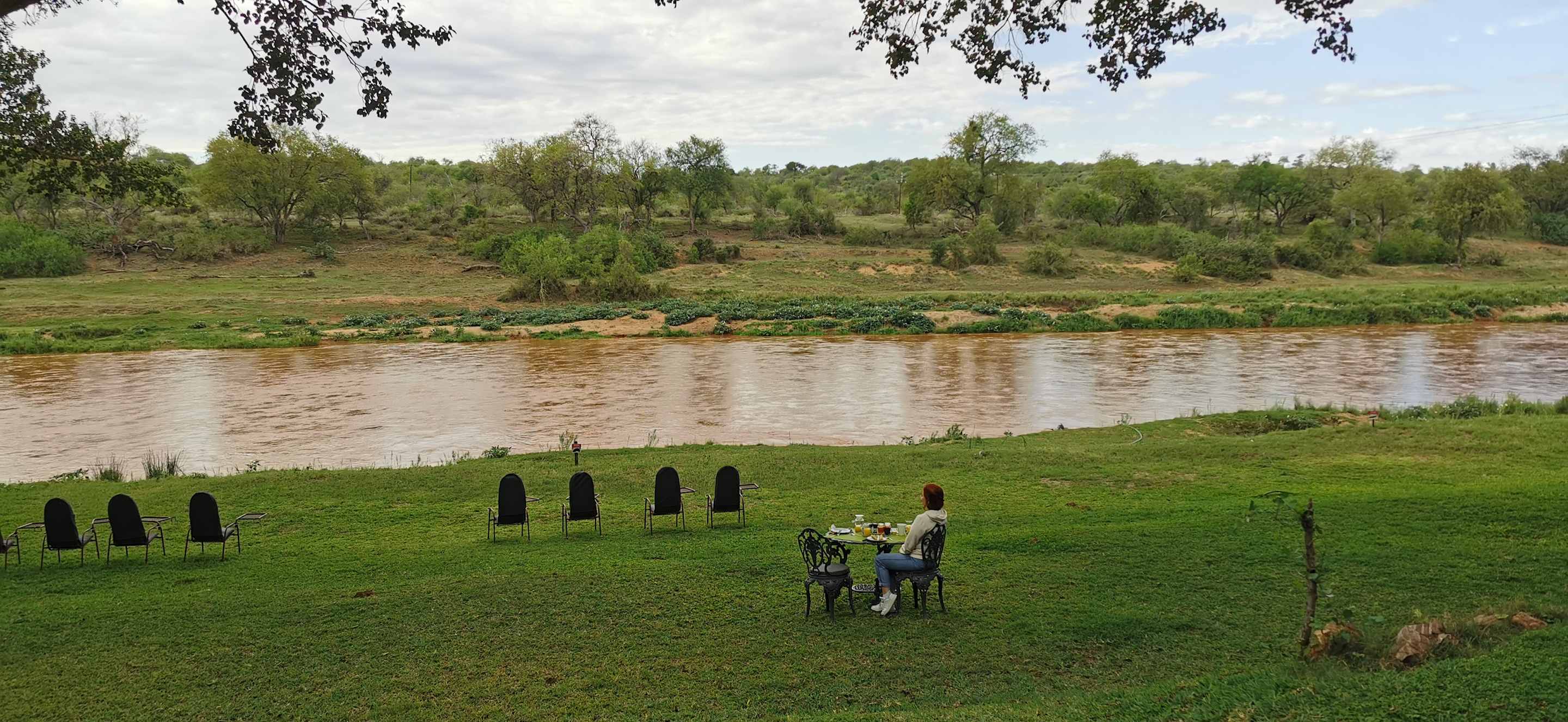 Sitzmöglichkeiten zum Fluss