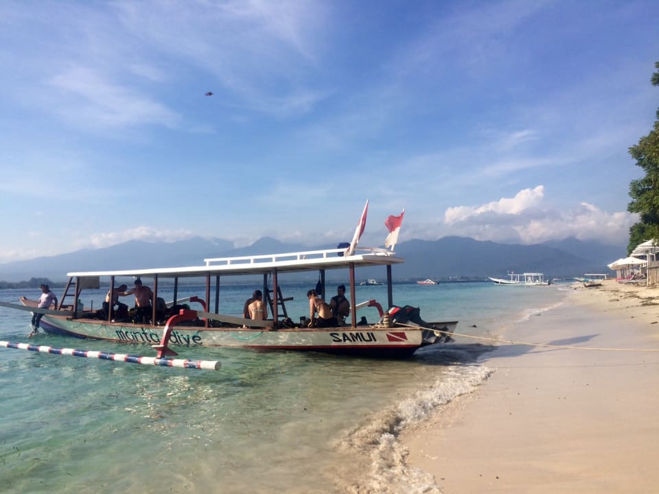 Eines der Tauchboote, genau vor dem Manta Dive Resort