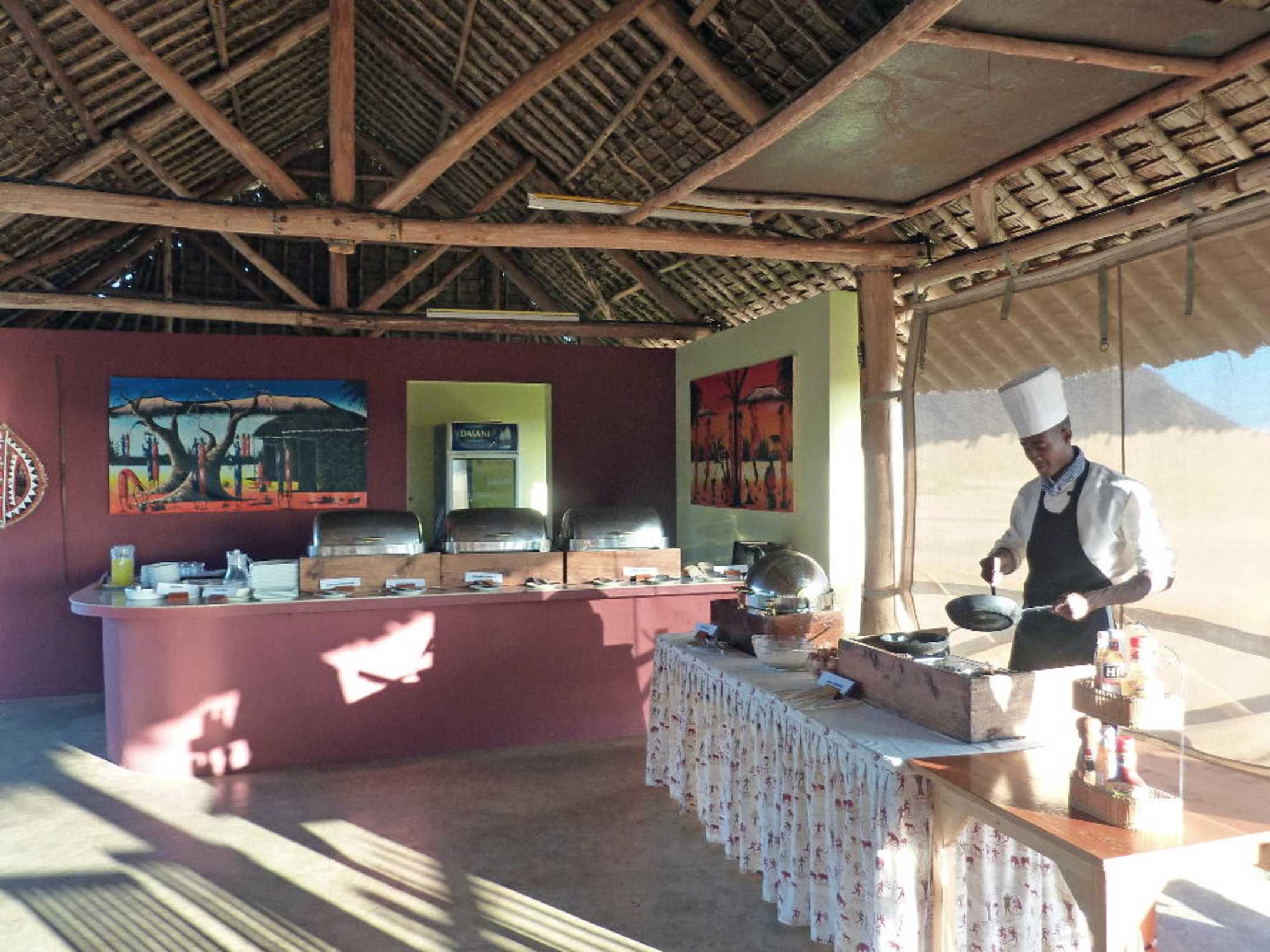 Teil des Frühstücksbuffets - mit Koch