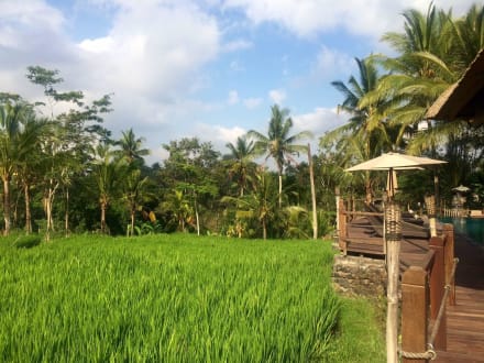 Reisfeld neben dem Pool