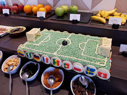 WM-Kuchen - wurde beim Frühstück gezeigt und dann zum Abendessen angeschnitten.