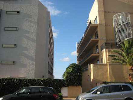 Seitlicher MeerblickHier sehen Sie den Abstand zwischen den beiden Hotels. Die Balkone liegen etwa 10m auseinander.