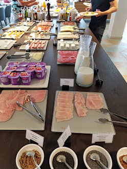 Ein Teil des Frühstücksbuffets (es gab z.B. normale Milch (warm und kalt) und auch Sojamilch)