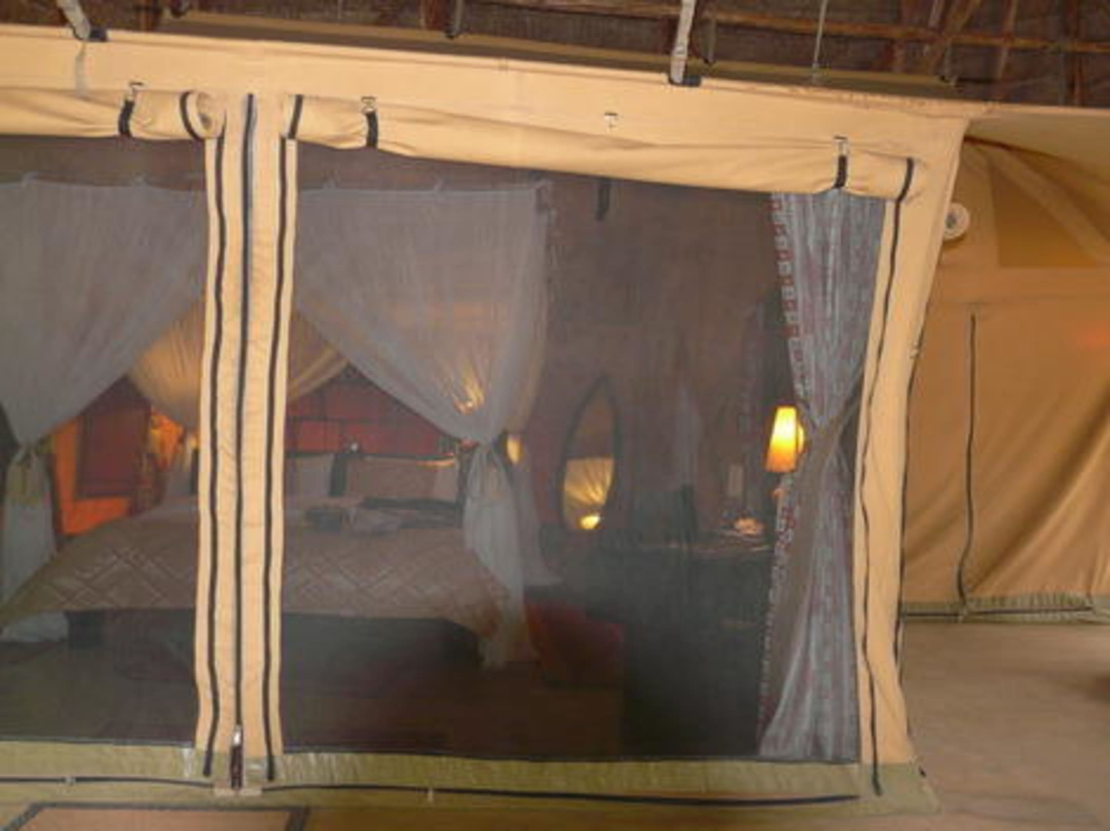Warmes Licht abends im Zelt
