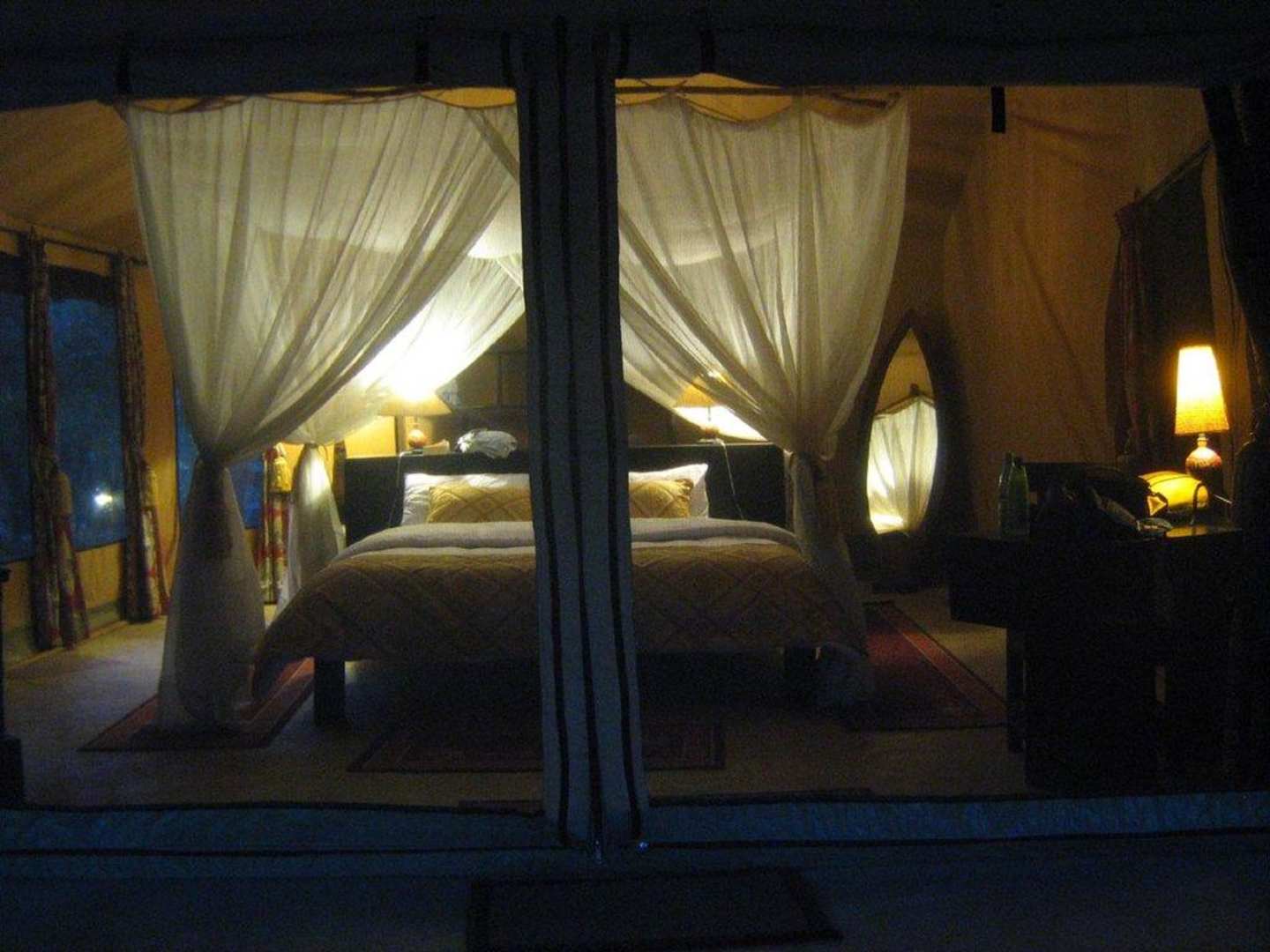 ZeltDas Zelt von außen. Abends wird der Insektenschutz zugemacht. Später auch noch die Rollos runtergelassen.