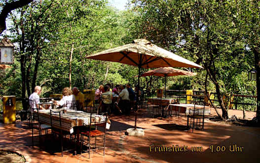Ja, das Restaurant ist nicht so schön, jedoch nur bei Regen genutzt. Und dann ist es mir eh egal. Sonst sitzt man auf der schönen Außenterrasse des Restaurant und lauscht dem Quaken der Frösche, dem Knurren der Hippos .......