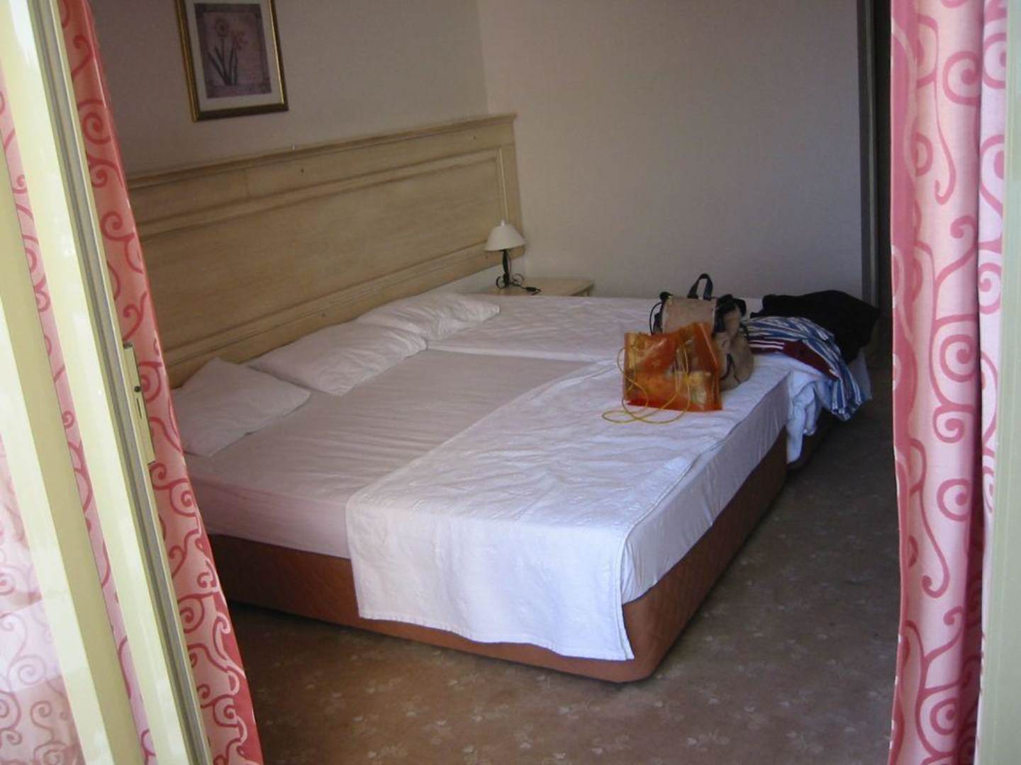 Doppelbett und Einzelbett zur Spielwiese zusammengeschoben