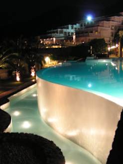Randloser Pool bei Nacht