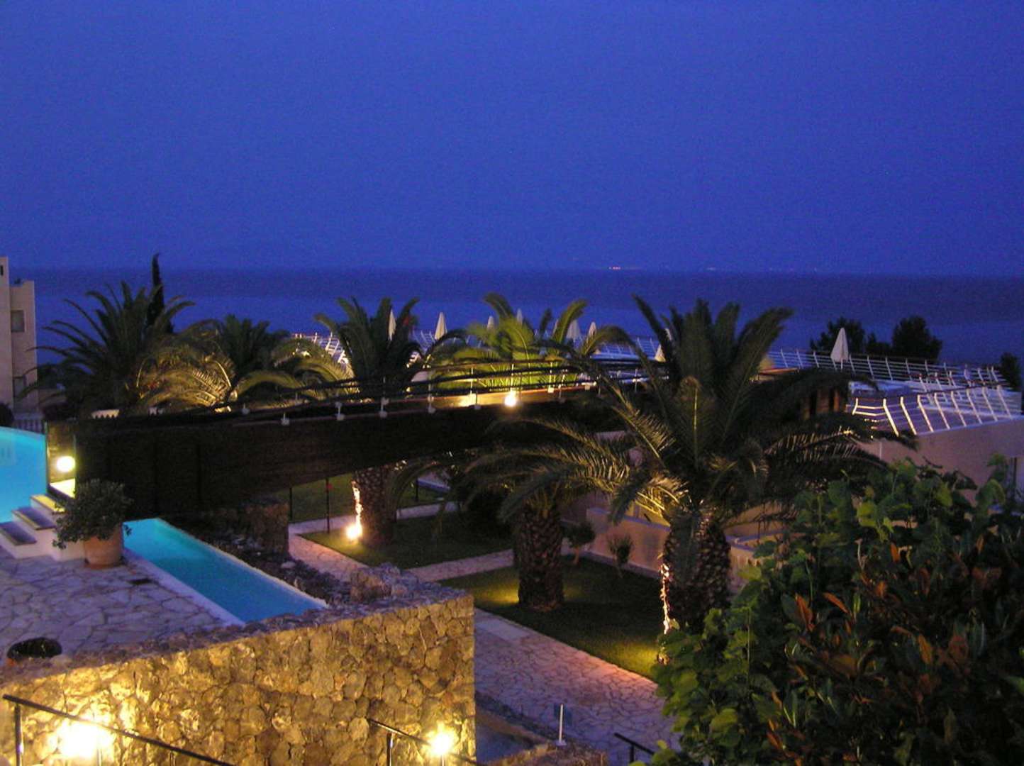 Steg zur Dachterrasse bei Nacht