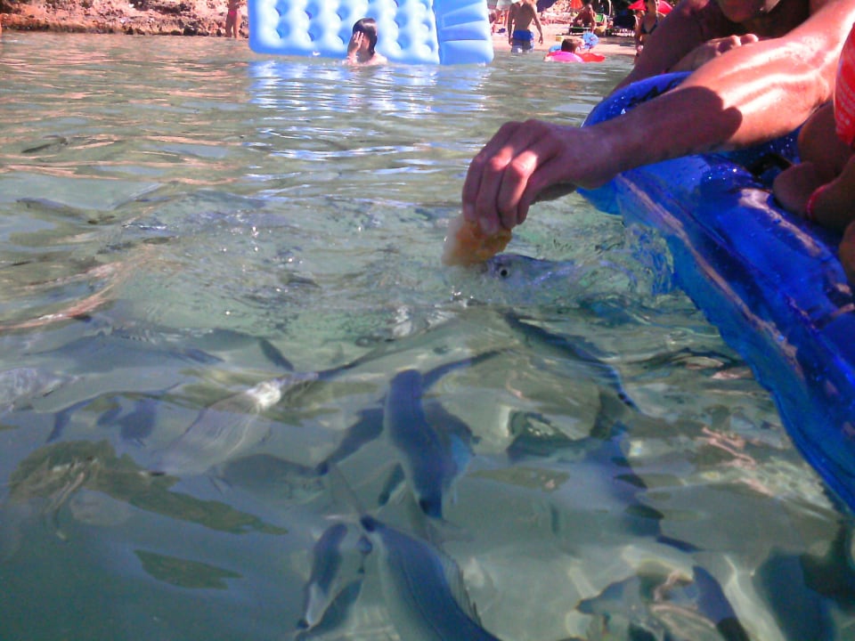 Fische füttern von Luftmatratze