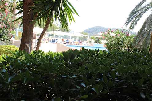 Blick von unserer Terrasse zum Pool (tiefer)