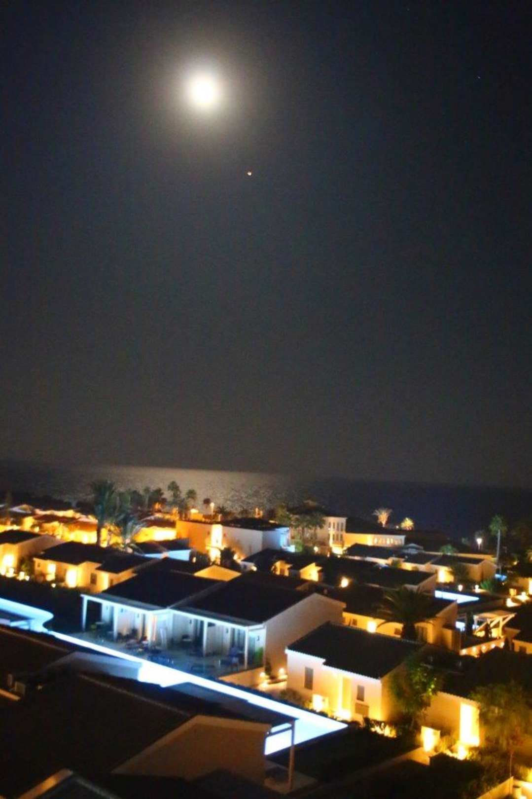 AusblickBlick vom Balkon über die Hoitelanlage bei Nacht und Vollmond